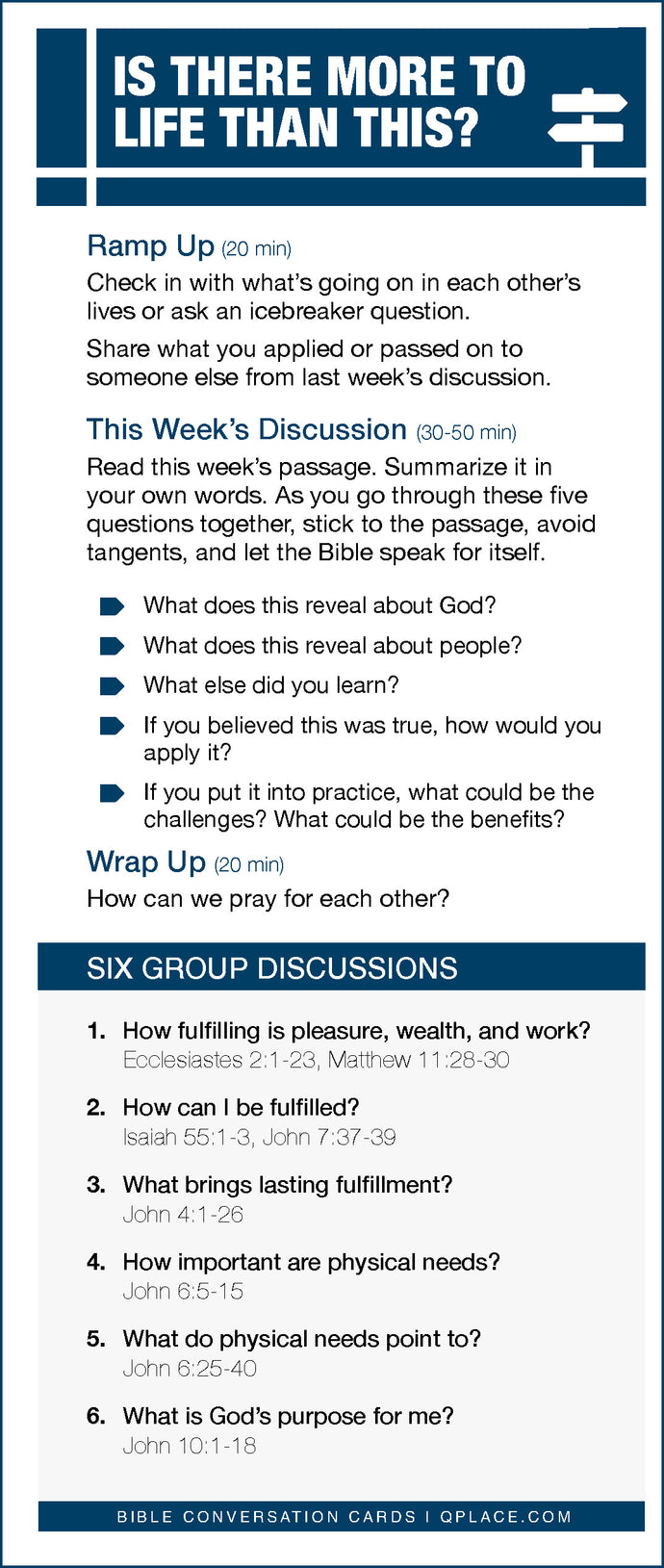 All too often we allow ourselves to drift into routines and activities that may not hold meaning when we think about the overarching course of our lives. What really gives life purpose and meaning? How can we get hold of those things? This Bible Conversation Card provides a variety of angles on these questions to help your group explore and make discoveries.